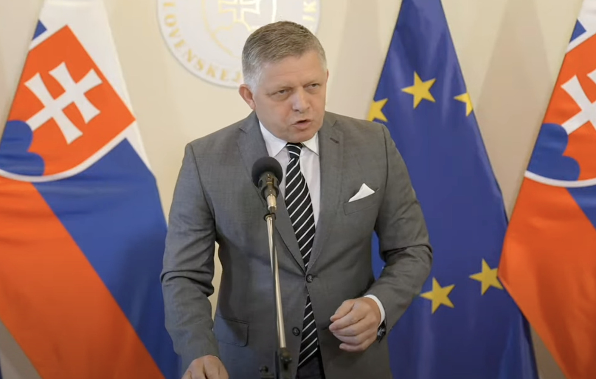 „Keby ste ma počúvali, už dva týždne o tom hovorím úplne otvorene. Ale vy si nájdete akúkoľvek hlúposť a zverejníte ju. Som predseda vlády, tak buďte ticho. Nepotrebujem hovorcov, ja presne hovorím, čo Slovensko bude robiť,“ reagoval podráždene Fico a zvýšil hlas pred zástupcami médií.