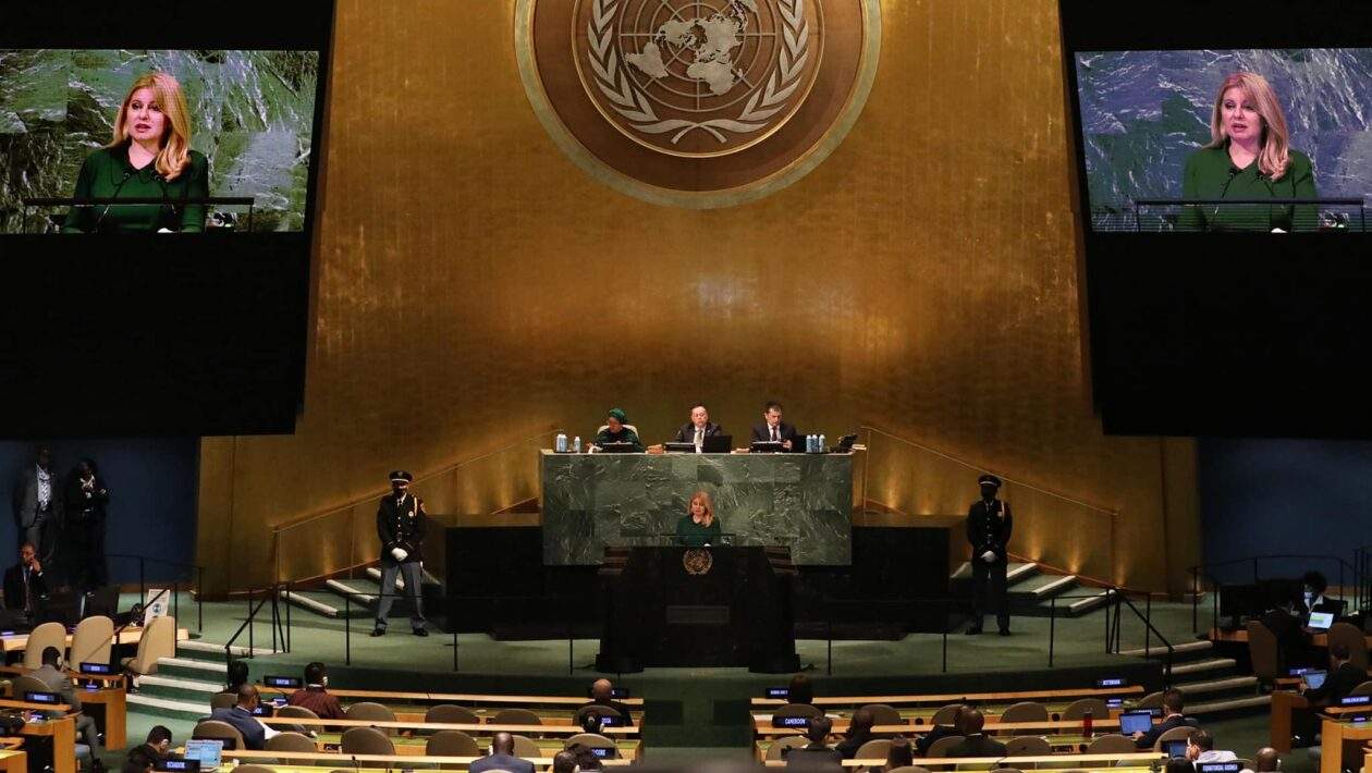 Prezidentka Zuzana Čaputová vystúpila v utorok v OSN v americkom New Yorku. Reakcia medzinárodného spoločenstva na ruskú okupáciu častí Gruzínska a Ukrajiny bola podľa nej nedostatočná, keďže jeho odhodlanie oslabili obavy o vlastný komfort. Táto slabosť povzbudila Rusko k ďalšej agresii. Po trapase na pohrebe kráľovnej Alžbety II., kedy svetoznáma agentúra AP označila za slovenského prezidenta jej partnera Juraja Rizmana si pre zmenu v OSN pomýlili vlajky a k slovenskej prezidentke priradili vlajku Slovinska.