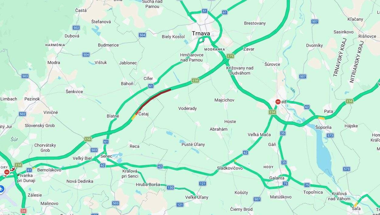 Podľa správy Krajského riaditeľstva PZ v Bratislave je kritickým bodom úsek pred mestom Trnava. Kolóny sa momentálne tvoria od miesta nehody až po úroveň zjazdu Senec/Blatné.