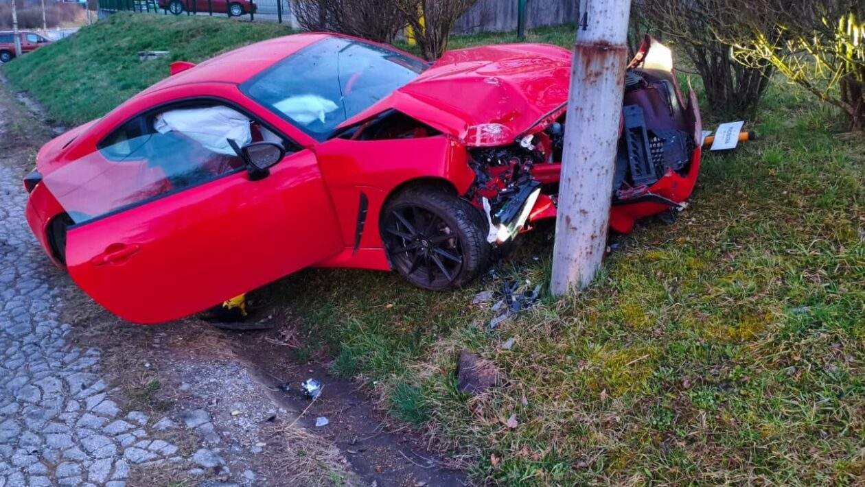BANSKÁ BYSTRICA – Na výpadovke z Banskej Bystrice smerom na obec Kyncelová došlo k dopravnej nehode osobného motorového vozidla. Červená športová Toyota zišla z vozovky a narazila do stĺpa verejného osvetlenia (foto: plenum.sk)