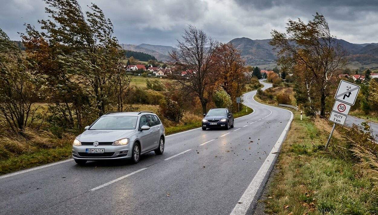 Prudký bočný náraz vetra môže v týchto miestach nečakane zmeniť smer jazdy vozidla, čo je nebezpečné najmä pri vyšších rýchlostiach.