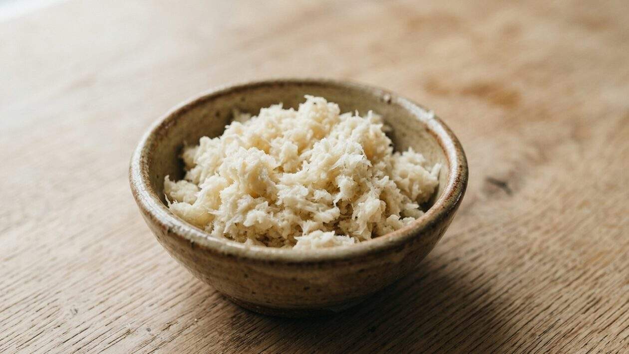 - Sila chrenu: Koreň chrenu očistite, opláchnite a nastrúhajte na jemnom strúhadle. Okamžite ho pokvapkajte citrónovou šťavou a premiešajte, aby zostal biely.