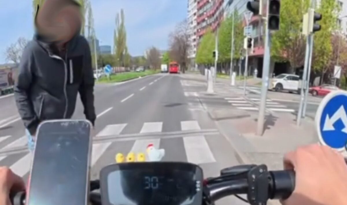 Nahnevaný chodec, ktorému kuriér skrížil cestu, stratil trpezlivosť a začal kolobežkárovi rázne ukazovať na semafor. Konflikt vyvrcholil drsným záverom, keď chodec kuriérovi bez servítky adresoval vulgárnu sprchu: