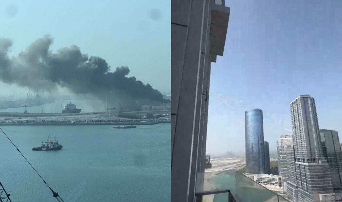 A massive column of smoke rose above the port in Abu Dhabi